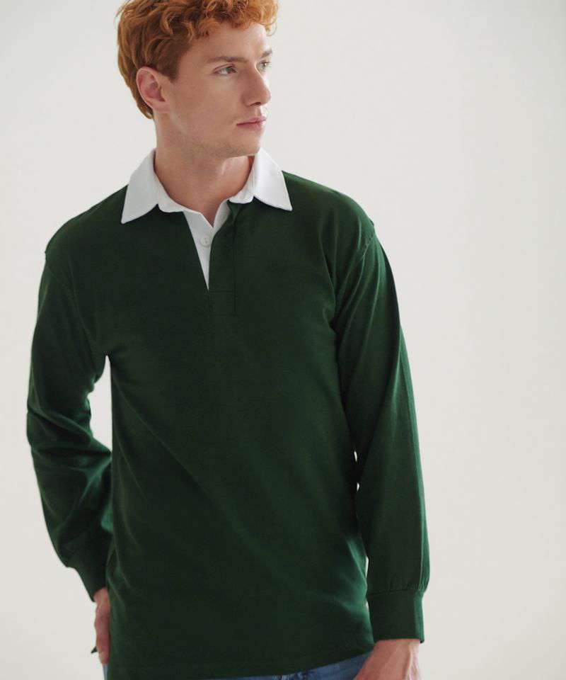 The original rugby shirt to hit the market, this heavyweight style has ample space to display a bold slogan, logo or crest making it perfect for everyone from fashion brands to traditional clubs. Made from 100% ringspun cotton, it has a traditional woven rugby collar and elastane reinforced cuffs. With taped shoulders and self-fabric facing on side vents.
